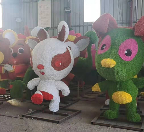 五色草造型设计主体造型有花瓶、花篮、花柱、花塔、楼阁、门栏假山和游龙,吼狮、大象、孔雀、熊猫等动物造型。