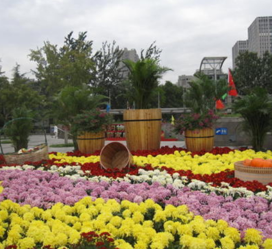 其次,要注意选择合适的菊花品种,一般来说菊花造型使用的时间较长,在选择的时候菊花要适宜当地的气候条件,只有这样才能保持好的景观效果;