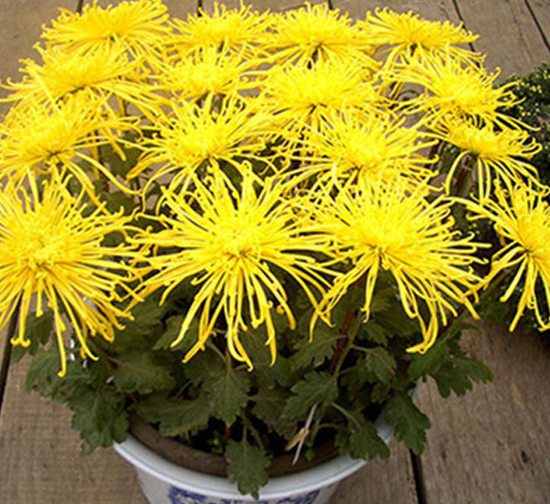 菊花属于菊科菊属,通常高60-150厘米,茎直立,多分枝,基部木质化。其叶片互生,形状多样,边缘有锯齿。菊花的花序为头状花序,花期一般在9月至11月,花色丰富,包括白色、黄色、红色和紫色等。菊花的花型和颜色变化多样,形成了数千个品种。